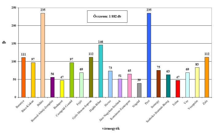 Helyi jelentőségű védett természeti területek megoszlása megyénként (2025. december 31.)